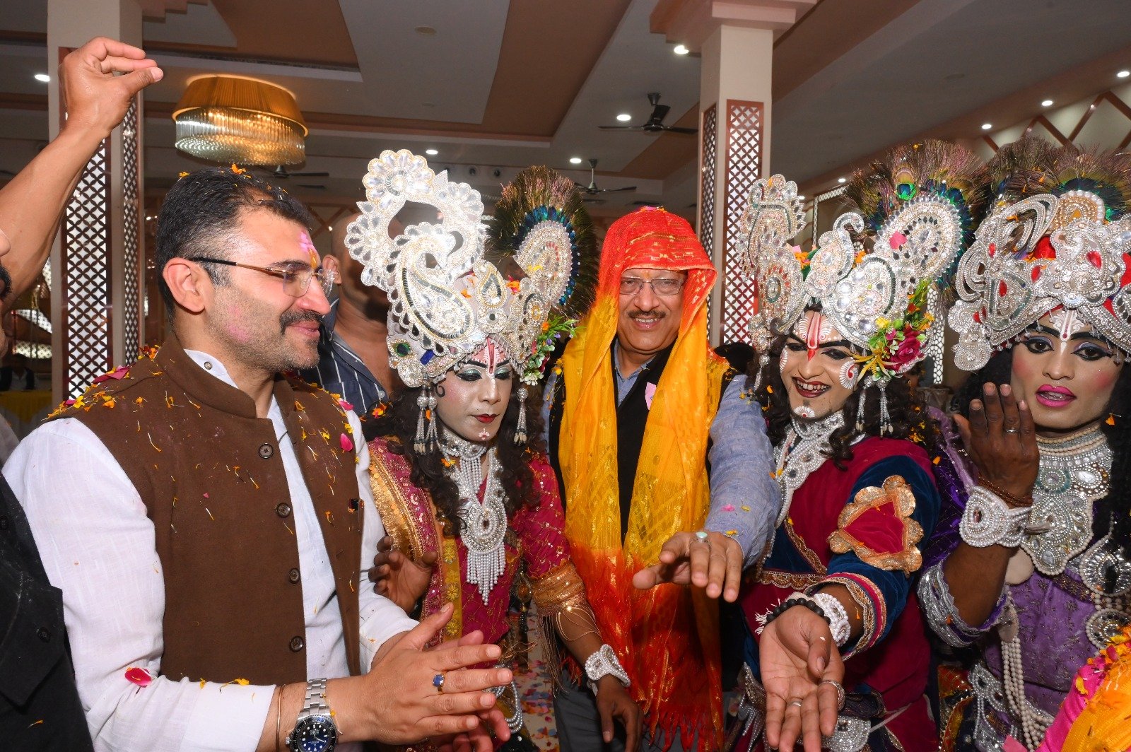समारोह की शुरुआत गढ़वाल का प्रसिद्ध लोकगीत “खोली के गणेश” की मंगलध्वनि के साथ कार्यक्रम का शुभारंभ हुआ, जिसने पूरे वातावरण को पारंपरिक और आध्यात्मिक ऊर्जा से भर दिया। इसके बाद मनमोहक राधा-कृष्ण लीला की प्रस्तुति ने दर्शकों को भक्ति रस में सराबोर कर दिया। क्रमशः विष्णु अवतार लीला एवं अन्य सांस्कृतिक प्रस्तुतियों ने मंच को जीवंत बनाए रखा। वृंदावन की प्रसिद्ध फूलों की होली की तर्ज पर पुष्प वर्षा के साथ होली खेली गई, जिससे पूरा परिसर रंग और उमंग से सराबोर हो गया। अंत में गढ़वाल की पारंपरिक ढोल-दमाऊं की थाप पर ‘ मोल्यार गढ़वाल होलियारों की टीम ‘ ने ऐसा रंग जमाया कि पूरा पंडाल झूम उठा और लोक संस्कृति की जीवंत छटा ने कार्यक्रम को चरम उत्साह तक पहुँचा दिया।