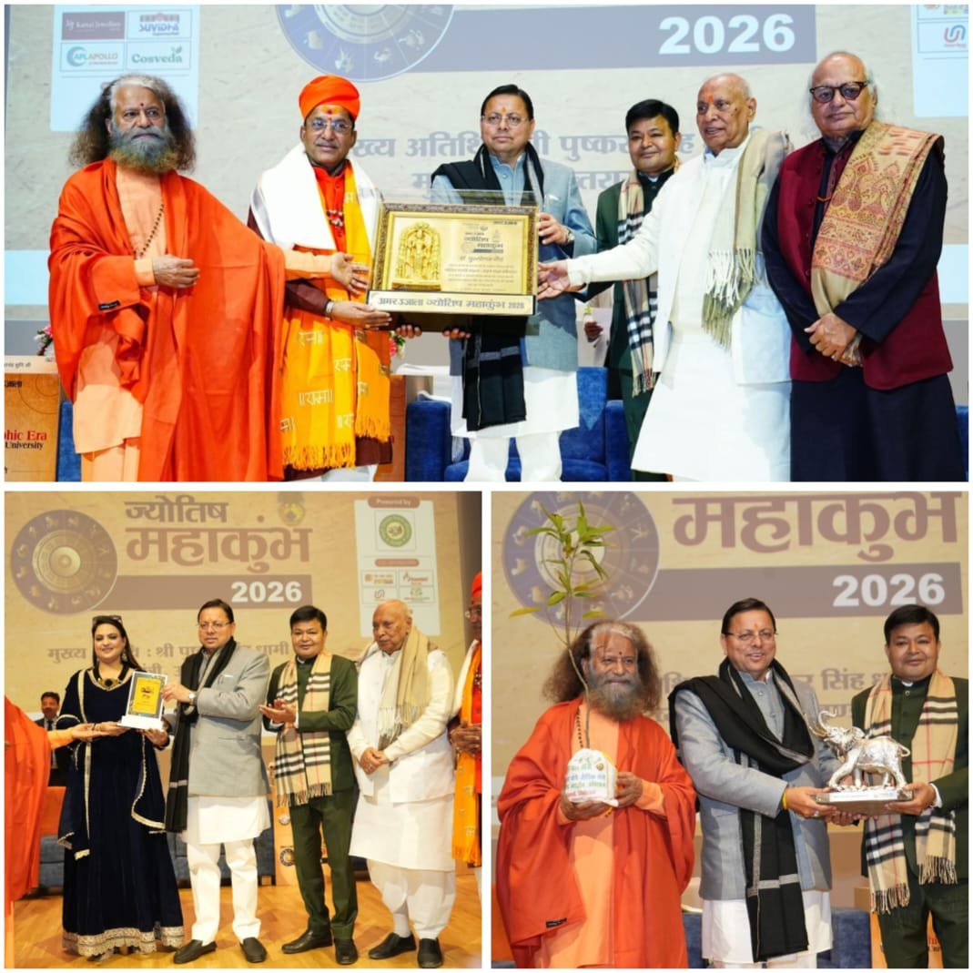 मुख्यमंत्री पुष्कर सिंह धामी ने शनिवार को ग्राफिक एरा यूनिवर्सिटी, देहरादून में अमर उजाला द्वारा आयोजित 8वें ज्योतिष महाकुम्भ के कार्यक्रम में प्रतिभाग किया। इस दौरान पंडित पुरुषोत्तम गौड़ को लाइफटाइम अचीवमेंट अवार्ड से सम्मानित किया गया। इसके साथ अन्य ज्योतिष आचार्यों को भी सम्मानित किया गया।