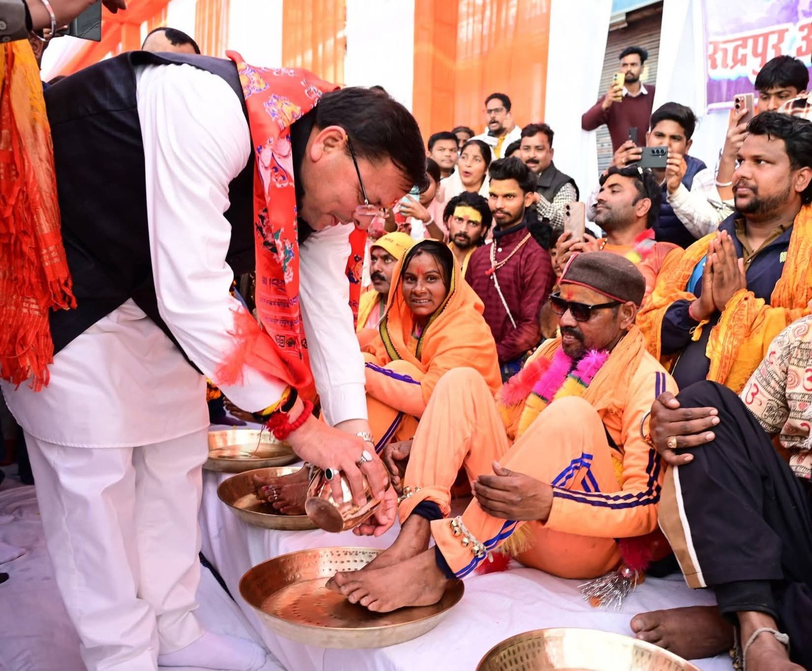 इससे पूर्व माननीय मुख्यमंत्री धामी ने त्रिशूल चौक का लोकार्पण किया उससे पूर्व उन्होंने कांवरियों की पैर पखारे एवं उनको अंगवस्त्र व पुष्प माला भेंट कर उनका अभिवादन किया, इसके उपरांत त्रिशूल चौक से सरस मेला कार्यक्रम स्थल गांधी पार्क तक आयोजित शिव बारात में प्रतिभाग किया। शिव बारात में माननीय मुख्यमंत्री का विभिन्न संगठनों व जनता द्वारा फूलमाला,पुष्पवर्षा कर भव्य स्वागत किया।
