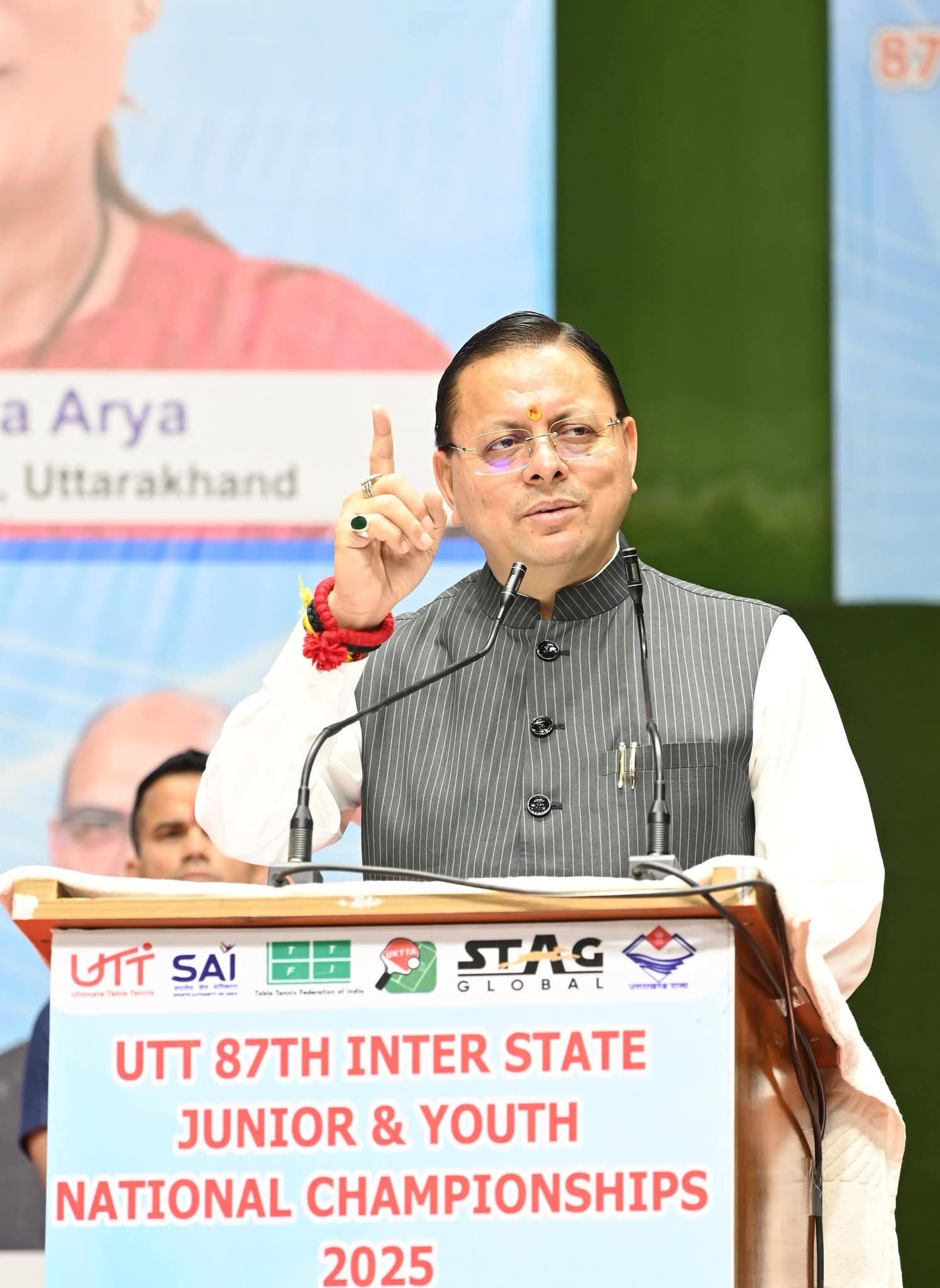 मुख्यमंत्री पुष्कर सिंह धामी जी ने देहरादून में 87वीं इंटर स्टेट जूनियर एवं यूथ नेशनल टेबल टेनिस चैंपियनशिप-2025 का शुभारंभ किया एवं खिलाड़ियों के साथ टेबल टेनिस खेलकर उनका उत्साहवर्धन किया।