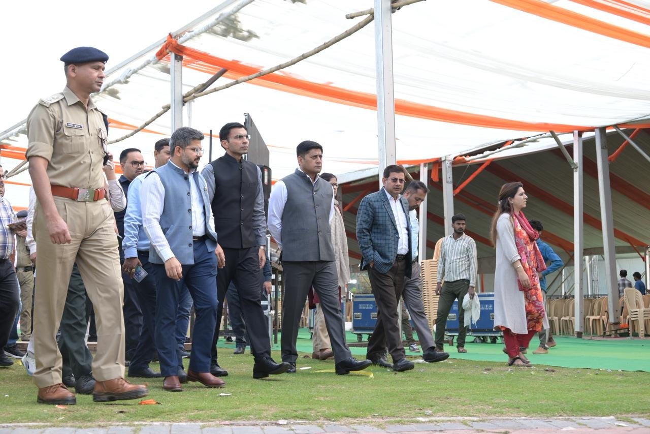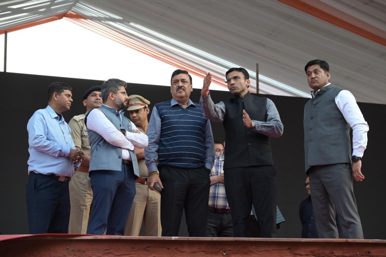 आयुक्त ने अधिकारियों को अपने दायित्वों का गंभीरता से निर्वहन करते हुए बेहतर समन्वय स्थापित करने पर बल दिया। निरीक्षण के दौरान मुख्य मंच, बैठने की व्यवस्था, बैरिकेडिंग, प्रकाश, एलईडी स्क्रीन, साउंड सिस्टम, यातायात एवं पार्किंग व्यवस्थाओं का गहन अवलोकन किया गया। उन्होंने निर्देशित किया कि मिनट-टू-मिनट कार्यक्रम के अनुरूप सभी व्यवस्थाएं सुनिश्चित की जाएं तथा विद्युत एवं साउंड सिस्टम के लिए पर्याप्त बैकअप रखा जाए।