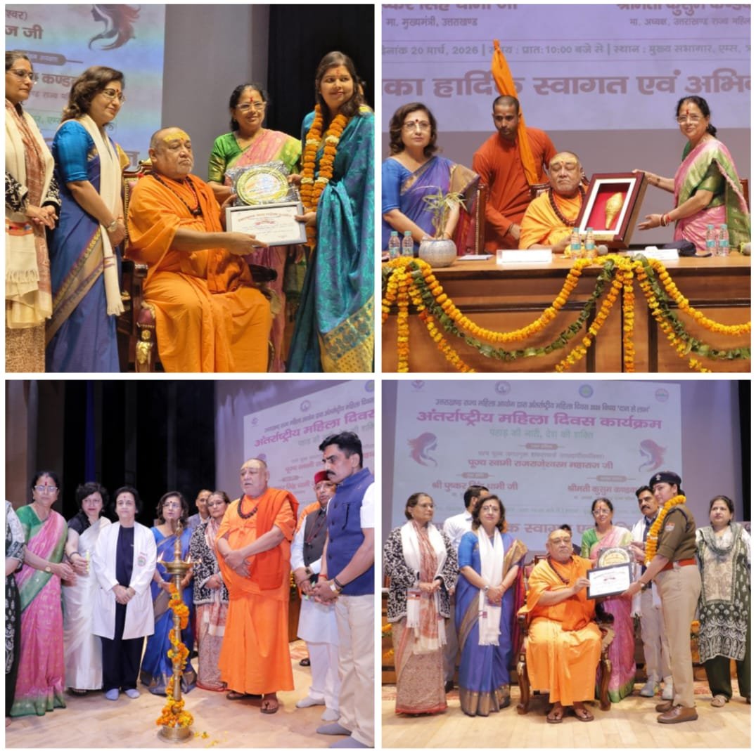 ऋषिकेश/देहरादून, 20 मार्च 2026: उत्तराखंड राज्य महिला आयोग द्वारा अंतर्राष्ट्रीय महिला दिवस “दान से लाभ” के अवसर पर ऋषिकेश स्थित एम्स के मुख्य सभागार में पहाड़ की नारी देश की शक्ति के नारे के साथ एक भव्य एवं गरिमामयी कार्यक्रम का आयोजन किया गया।