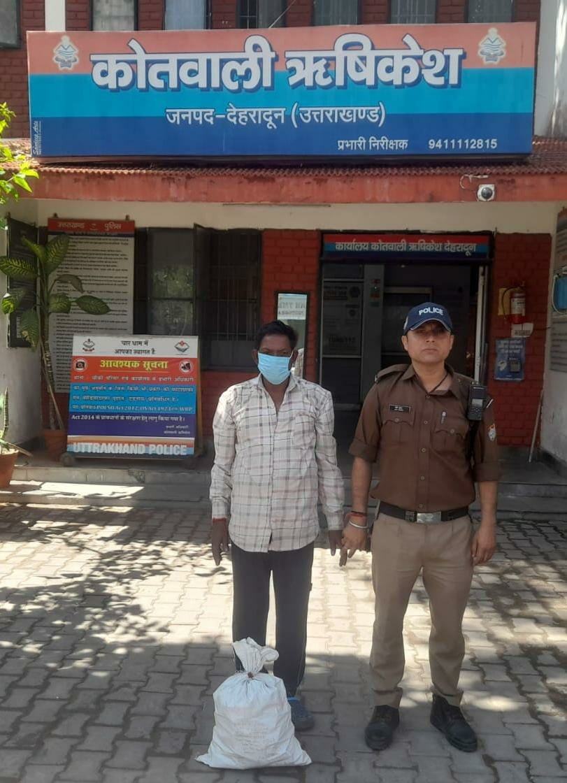 दि0 21.03.2026 को ऋषिकेश पुलिस द्वारा चैकिग के दौरान मंसा देवी पुलिया के पास श्यामपुर, ऋषिकेश से अभियुक्त राम अवतार पुत्र महेसर साहनी निवासी- गली न0-10 गुर्जर प्लाट, गुमानीवाला, श्यामपुर, थाना ऋषिकेश जनपद देहरादून उम्र 48 वर्ष को 01 किलो 340 ग्राम अवैध गांजा की तस्करी करते हुये गिरफ्तार किया गया । अभियुक्त के विरूद्ध कोतवाली ऋषिकेश पर मु0अ0सं0- 111/2026 धारा 8/20 NDPS Act पंजीकृत किया गया।