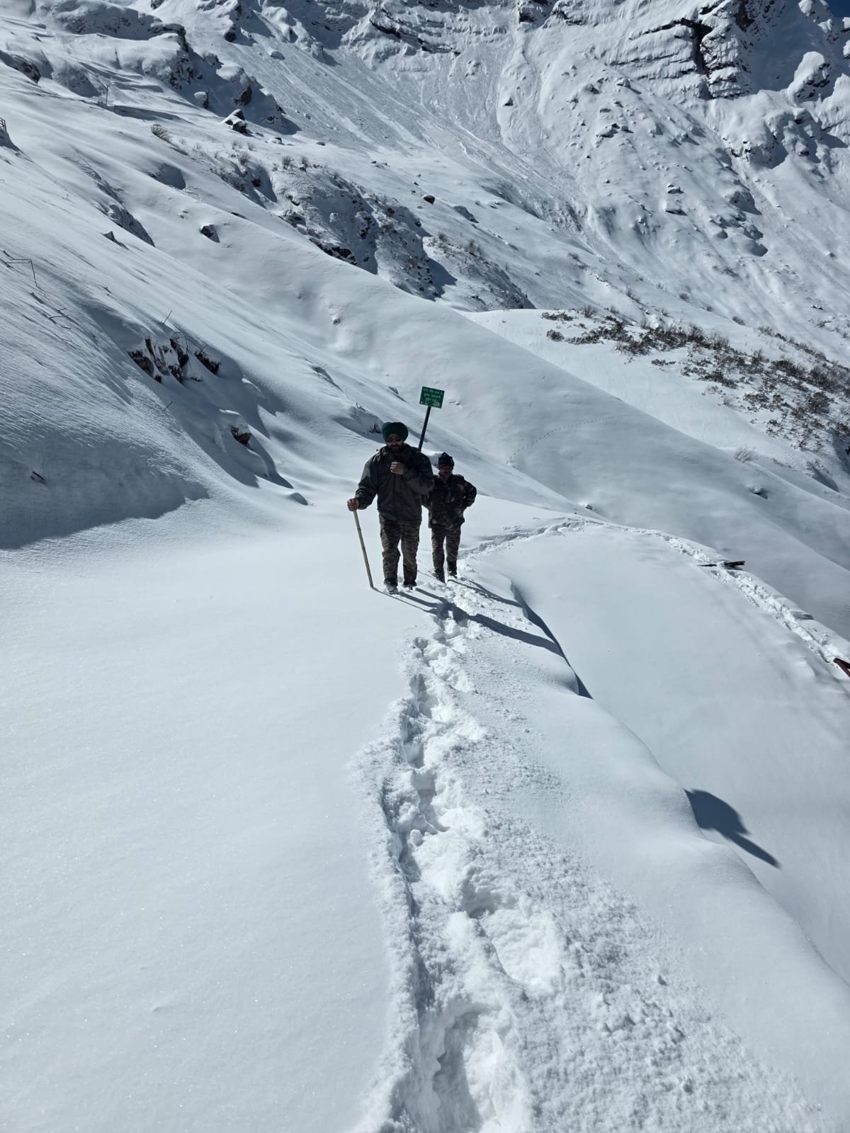 भारतीय सेना के जवान और गुरुद्वारा श्री हेमकुंट साहिब मैनेजमेंट ट्रस्ट के सेवादारों ने गोविंदघाट से श्री हेमकुंट साहिब तक ट्रेक रूट की रेकी की