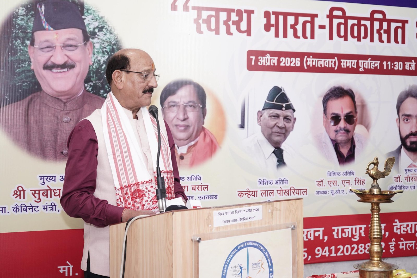 विश्व स्वास्थ्य दिवस के अवसर पर दून विहार, जाखन में संजय ऑर्थोपीडिक, स्पाइन एवं मैटरनिटी सेंटर एवं सेवा सोसाइटी द्वारा आयोजित “स्वस्थ भारत – विकसित भारत” कार्यक्रम में प्रदेश के स्वास्थ्य मंत्री श्री सुबोध उनियाल बतौर मुख्य अतिथि सम्मिलित हुए और कार्यक्रम का शुभारंभ किया।